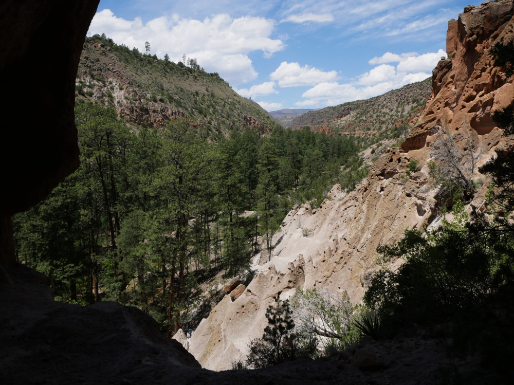 Up until this point, nothing I'd seen on the trail had jogged my faint 25-year-old memory of Bandelier. Then the path cut left toward the opposite wall, connected with a trail that followed the creek through the center of the canyon, I looked up, and there it was.