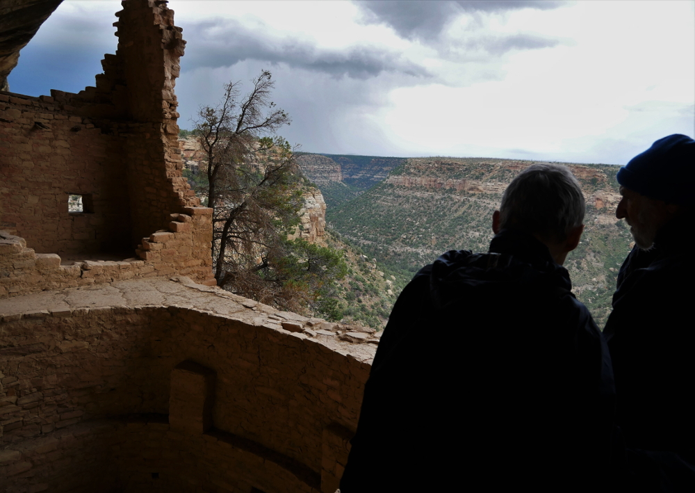 As the ranger talked about the builders of Balcony House and its construction, I used my imagination to replace the other hikers — wearing colorful jackets and hydration backpacks and carrying digital cameras — with Ancient Puebloans climbing in and around the alcove and the 40 rooms of Balcony House, just going about their daily lives. I saw a few of them caught in a daydream, staring off across Soda Canyon to the flicker of lightning strikes on the opposite side. Then I gazed across the expanse and got locked in a state of awe, envious of the people who were able to wake up to this view every morning.